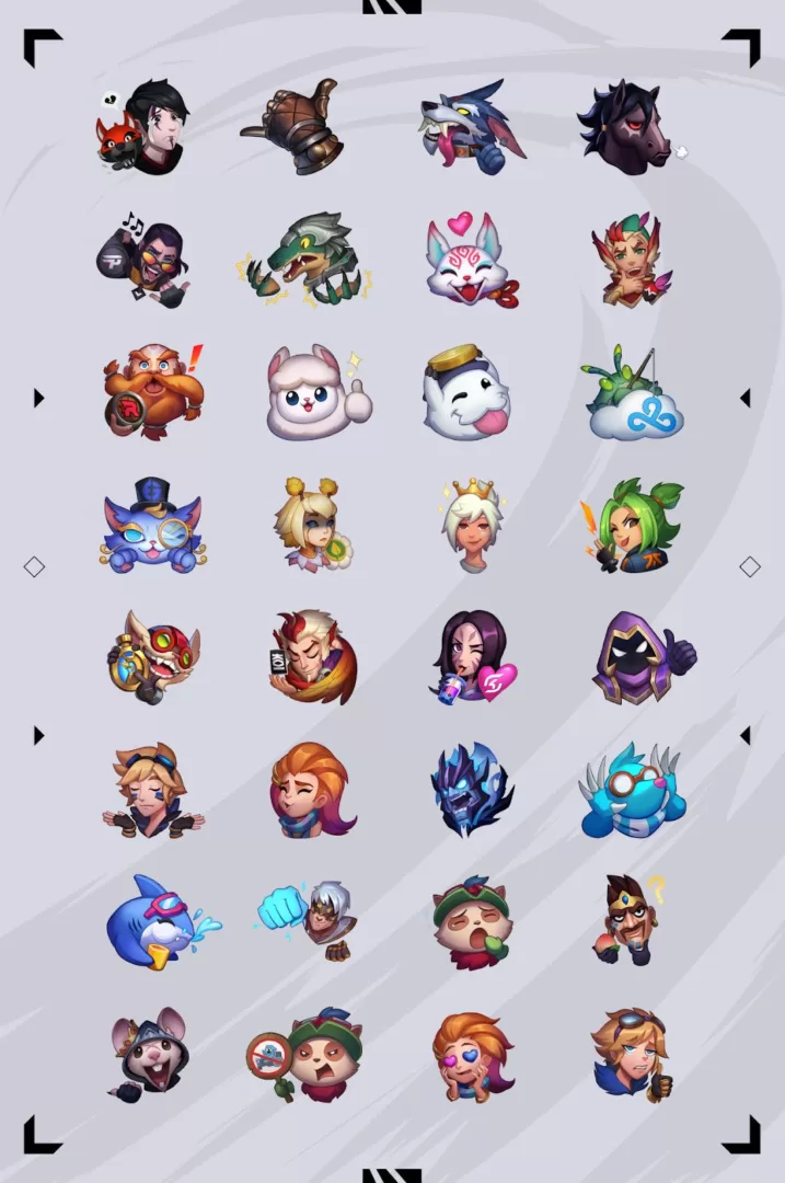 Confira AQUI e abaixo os emotes e veja quais você reconhece! Um exemplo é o LCK: DK — ALPACA, cocriado pela DK em homenagem a uma piada recorrente entre Deft e os fãs. (DICA: cada jogador/equipe só é usado uma vez)
